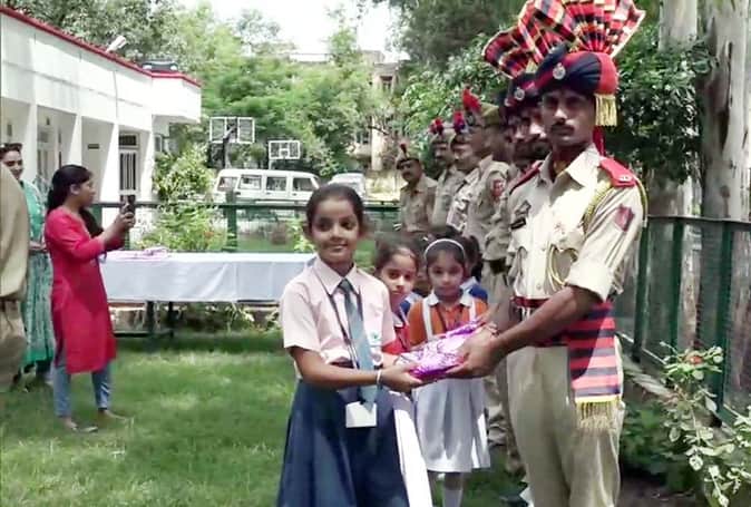 KATHUA: School students in the district celebrate #RakshaBandhan with security personnel. #JammuAndKashmir pic.twitter.com/q5Qp9xg39D
