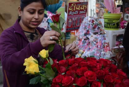 रोज डे के अवसर पर गुलाब खरीदती युवती