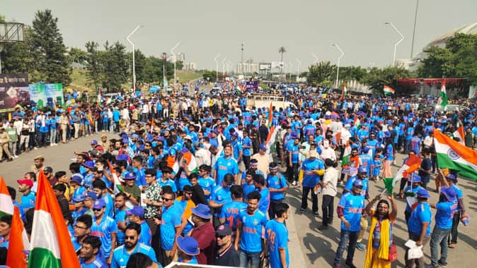 रविवार को अहमदाबाद के नरेंद्र मोदी स्टेडियम में भारत और ऑस्ट्रेलिया के बीच वर्ल्डकप का फाइनल मैच खेला जाना है। 2011 के बाद एक बार फिर से देशवासियों की विश्वकप जीतने की प्रबल उम्मीद जगी है। टीम इंडिया को चियरअप करने और भारतीय खिलाड़ियों का हौसला बढ़ाने के लिए लाखों की संख्या में प्रशंसकों के स्टेडियम में पहुंचने की उम्मीद है। रिपोर्ट्स की मानें तो करीब सवा लाख की क्षमता वाला स्टेडियम टीम के सपोर्ट में खचाखच भरा रहने वाला है।
