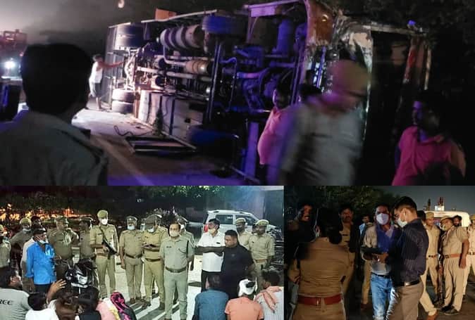 बाराबंकी: हाइवे पर यात्रियों से भरी बस पलटी, 19 घायल, एक की हालत ज्यादा गंभीर