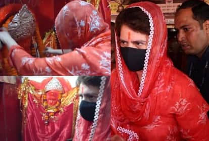 मंदिर में पूजन के दौरान प्रियंका गांधी।