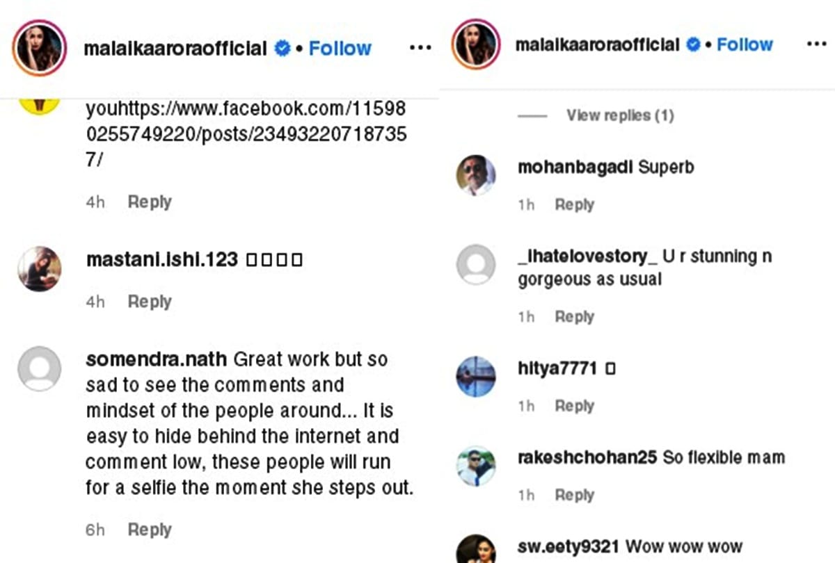 वहीं एक अन्य ने लिखा, 'लिखने से पहले जरा सोच लिया करें कि आप क्या बकवास कर रहे हैं'। एक यूजर ने लिखा कि इंटरनेट पर किसी के लिए कुछ भी लिखना काफी आसान है। लेकिन अगर मलाइका उनके सामने आ गईं तो तुरंत सेल्फी के लिए आ जाएंगे। कई यूजर्स ने मलाइका की 45 की उम्र में भी शानदार फिटनेस को लेकर तारीफ की।