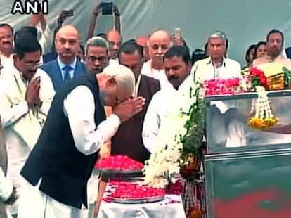 प्रधानमंत्री नरेंद्र मोदी ने दिल्ली के निगमबोध घाट पर दिवंगत अशोक सिंघल का अपनी श्रद्घाजंलि दी।