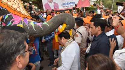 BJP National Executive Meeting: जेपी नड्डा के जयपुर पहुंचने पर हाथी ने पहनाई माला, विरोधी दिखे साथ, देखें तस्वीरें