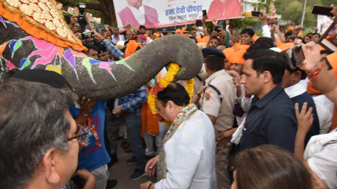 हाथी ने माला पहनाकर जेपी नड्डा का स्वागत किया।