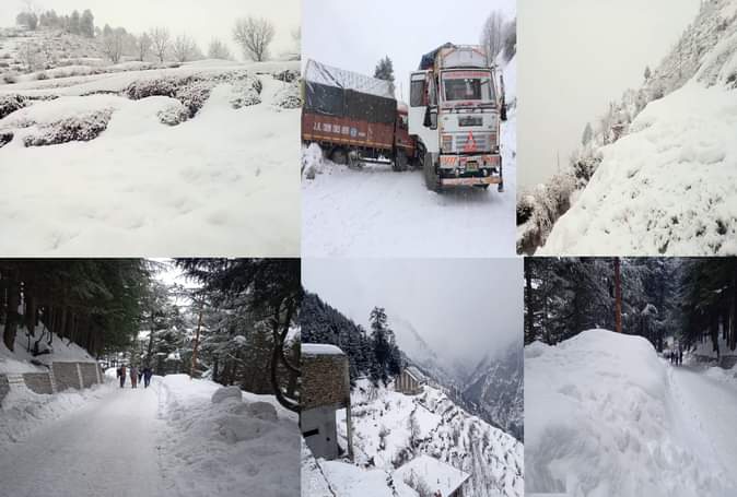 कुल्लू व लाहौल के ऊंचाई वाले क्षेत्रों में ताजा हिमपात हुआ है। जिले में सोमवार रात से हो रही बर्फबारी से दुश्वारियां फिर से बढ़ गई। कुल्लू में नेशनल हाईवे-305 समेत दो दर्जन मार्ग अवरुद्ध हो गए हैं। इसके अलावा रूटों पर दो बसें भी फंसी हुई हैं। प्रशासन ने सैलानियों के साथ आम लोगों को मौसम भांपकर ही घरों से बाहर आवाजाही करने को कहा है। जलोड़ी दर्रा के साथ बिजली महादेव, रघुपुरगढ़, लांबालांबरी, बशलेउ जोत, हामटा पास सहित जिले के ऊपरी क्षेत्रों में ताजा हिमपात और निचले क्षेत्रों में झमाझम बारिश हो रही है। कड़ाके की ठंड से जनजीवन अस्त व्यस्त हो गया है।