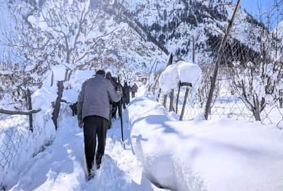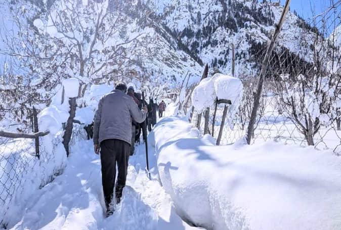 बर्फबारी से दुश्वारिंया, लोग पैदल चलने को मजबूर।