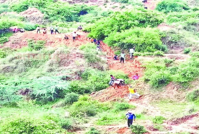 युवकों ने टीलों को काटकर बनाया रास्ता