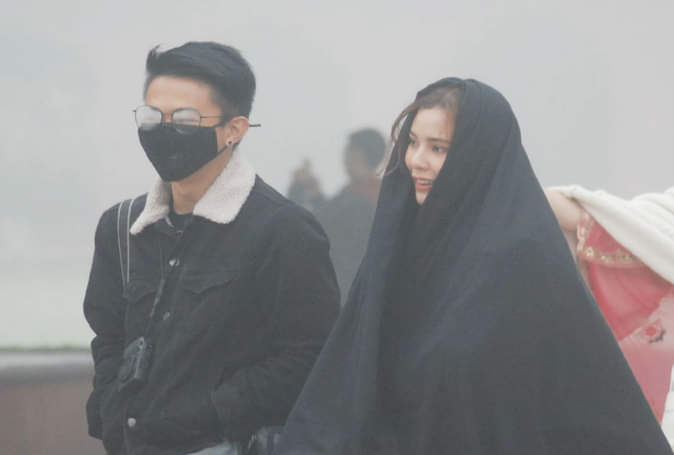 मास्क पहने पर्यटक