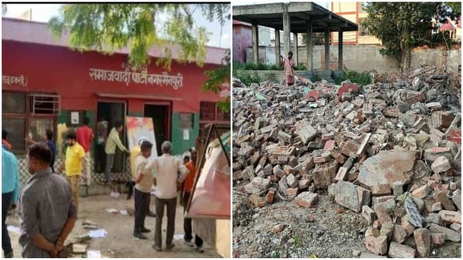 बड़ी कार्रवाई: मैनपुरी में समाजवादी पार्टी से खाली कराए गए कार्यालय पर चला बुलडोजर, जमींदोज