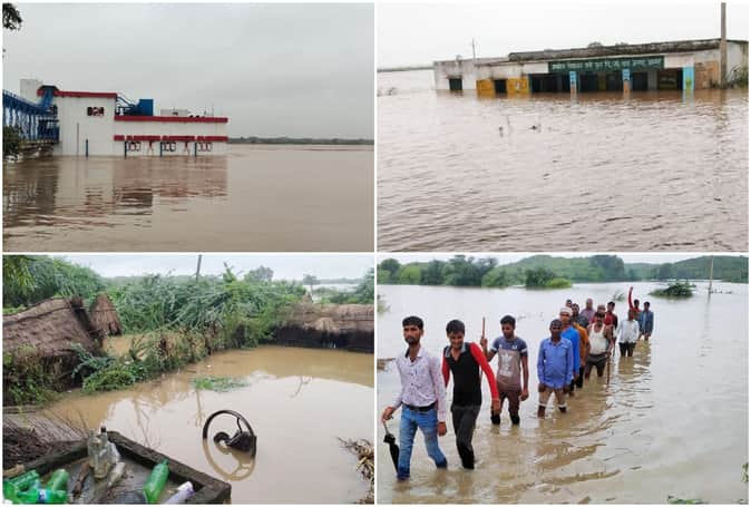 राजस्थान और मध्य प्रदेश में मूसलाधार बारिश और काली नदी के उफान से चंबल किनारे बसे गांव में बाढ़ के हालात बन गए हैं। पिनाहट में खतरे का निशान 130 मीटर पर है। चंबल इससे पांच मीटर ऊपर बह रही है। उधर, धौलपुर में हालात बेहद खराब हैं। यहां जलस्तर 144 मीटर है।