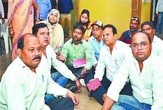 धरने पर बैठे पार्षदों को समझाते अन्य पार्षद