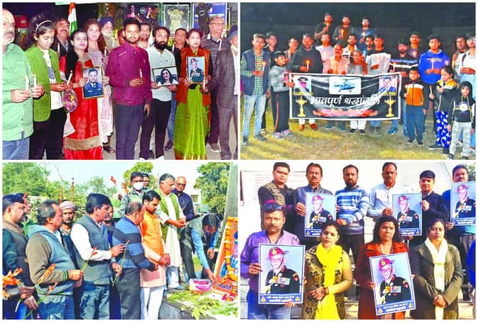अटल चौक सेवा समिति व भाजपा छावनी मंडल की ओर से आगरा कैंट स्थित अटल चौक पर शहीदों को श्रद्धांजलि दी गई। लीडर्स आगरा की ओर से शहीद स्मारक पर जांबाजों को श्रद्धांजलि दी गई। दो मिनट का मौन रखा गया। वॉयस ऑफ एक्स सर्विसमैन सोसाइटी के राष्ट्रीय संयोजक बीर बहादुर सिंह ने कहा कि जनरल बिपिन रावत की शहादत से देश की रक्षा प्रणाली को नुकसान हुआ है। थिंककार्ट सर्विसेज संस्थान की ओर से कैंडल मार्च निकाला गया। एयरफोर्स के जवान भी शोक सभा में शामिल हुए। रावी इवेंट्स की ओर से सूर्य नगर स्थित कार्यालय में श्रद्धांजलि दी गई। दो मिनट का मौन रखा गया।