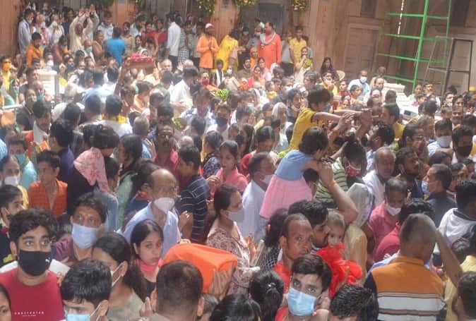 संभलिए! कहीं फिर देर न हो जाए: श्रीबांकेबिहारी के दर्शन के लिए उमड़े भक्त, कोविड नियमों की उड़ीं धज्जियां