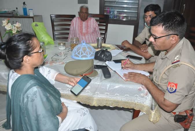 आगरा: डॉक्टर के घर डकैती के बाद पूछताछ करती पुलिस