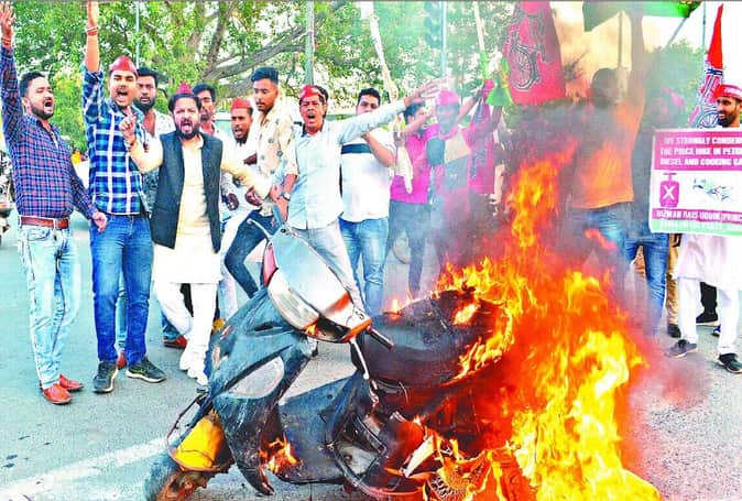 महंगाई की आग: आगरा में पेट्रोल 100 रुपये पार होने पर सपा नेता ने फूंका स्कूटर, मुकदमा दर्ज