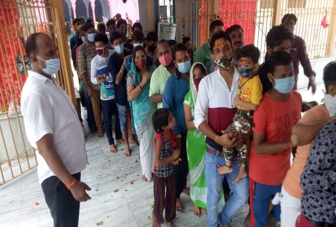 बल्केश्वर महादेव मंदिर के बाहर भक्तों की कतार