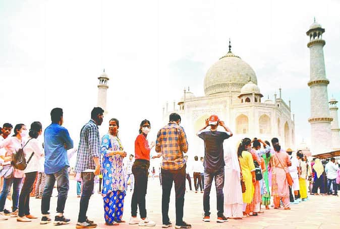 वाह ताज: सप्ताहांत में पर्यटकों से 'गुलजार' ऐतिहासिक स्मारक, मुख्य गुंबद तक लगी कतारें