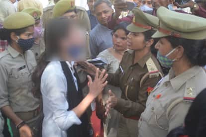युवती को समझाती पुलिस।