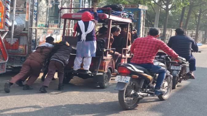 इसके बाद जो हुआ, वह उम्मीद से परे था। ई-रिक्शा में सवार एक दर्जन से अधिक छोटे बच्चे नीचे उतरे और चालक के कहने पर ई-रिक्शा को धक्का लगाना शुरू कर दिया।