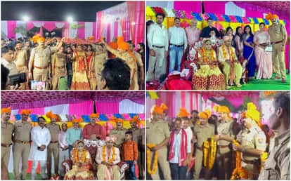 यूपी के चंदौली जिले का आवाजापुर गांव शनिवार रात एक अलग तरह की शादी का गवाह बना। इस शादी में चंदौली पुलिस घराती बनी थी। एसपी, सीओ, इंस्पेक्टर और अन्य पुलिसकर्मियों ने भी साफा बांधकर बरातियों का स्वागत किया। मुंहबोली बहन शिखा को जयमाल स्टेज तक अगवानी करके ले गए, फिर आशीर्वाद और उपहार भी दिए। मौका था सीओ अनिरुद्ध सिंह की मुंहबोली बहन शिखा की शादी का।