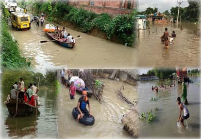 यूपी: बाढ़ के कहर से मंडरा रहा मौत का साया, टापू बने गांव, सड़क पर चली नाव, देखें तस्वीरें