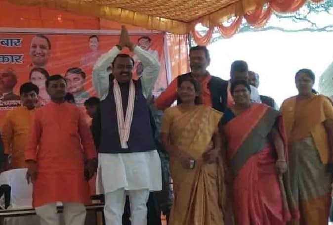 केशव मौर्य का स्वागत करते बीजेपी समर्थक