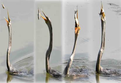 इसके बाद चोंच मार कर उसे घायल कर देता है। फिर हवा में उछालकर उसे हजम कर लेता है।
