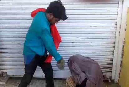 चप्पल से पिटाई करता युवक