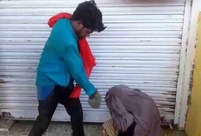 चप्पल से पिटाई करता भगवाधारी युवक