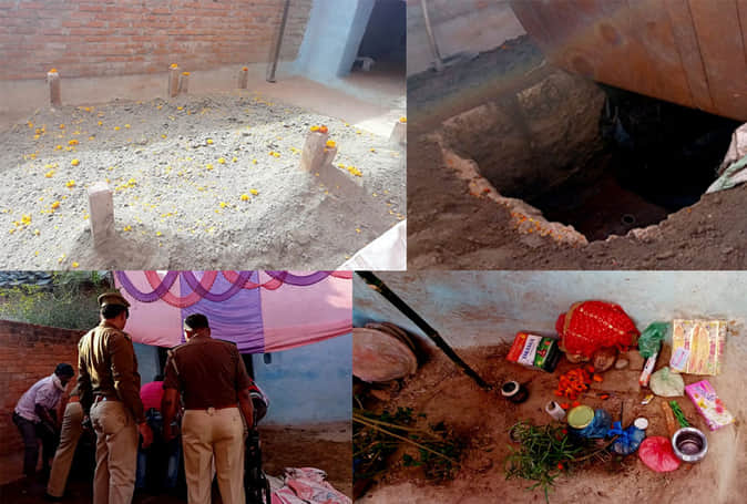 तस्वीरें: भगवान से मिलने की बात कहकर महिला तांत्रिक ने घर की चौखट पर ली भू समाधि, नजारा देख पुलिस के उड़े होश