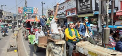 शामली में भाकियू कार्यकताओं ने निकाला ट्रैक्टर मार्च, तहसील के अंदर खड़े किए ट्रैक्टर