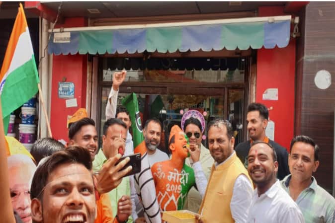 जश्न मनाते भाजपा समर्थक