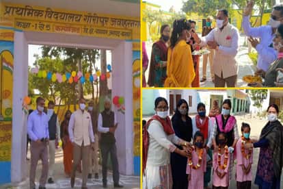 उत्साह: परिषदीय विद्यालयों में 11 माह बाद शुरू हुई कक्षाएं, चाॅकलेट, गुब्बारों और फूलमालाओं से हुआ स्वागत