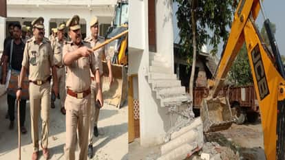 आरोपियों के घरों पर जेसीबी से कार्रवाई करती पुलिस।