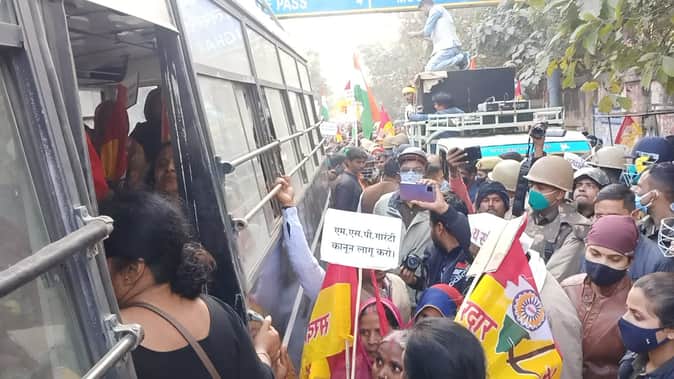 नए कृषि कानूनों के विरोध में पीएम के संसदीय कार्यालय जा रहे 150 किसान गिरफ्तार, देखें तस्वीरें