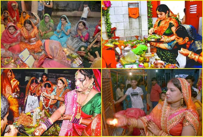 कई घरों में शिव पार्वती के भजन और मंगल गान के साथ तरह-तरह के पकवानों का भोग शिव-पार्वती को अर्पित किया गया। सुबह से व्रती महिलाओं ने केले के पत्ते से मंडप बनाया और उसमें शिव पार्वती की कच्ची मिट्टी से बनी मूर्ती को स्थापित कर उसका शृंगार किया।