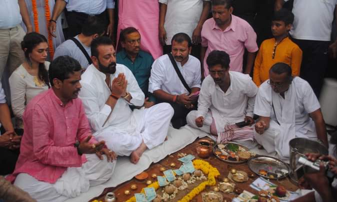 संजय दत्त ने अपनी मां नरगिस, पिता सुनील दत्त के साथ दादा- दादी और परदादा -दादी का पिंडदान किया। पिंडदान के बाद संजू बाबा ने 125 लीटर दूध से मां गंगा का अभिषेक किया। इसके बाद आरती उतारी। पिंडदान के बाद संजू बाबा ने पुरोहितों को दक्षिणा देकर विदा किया।