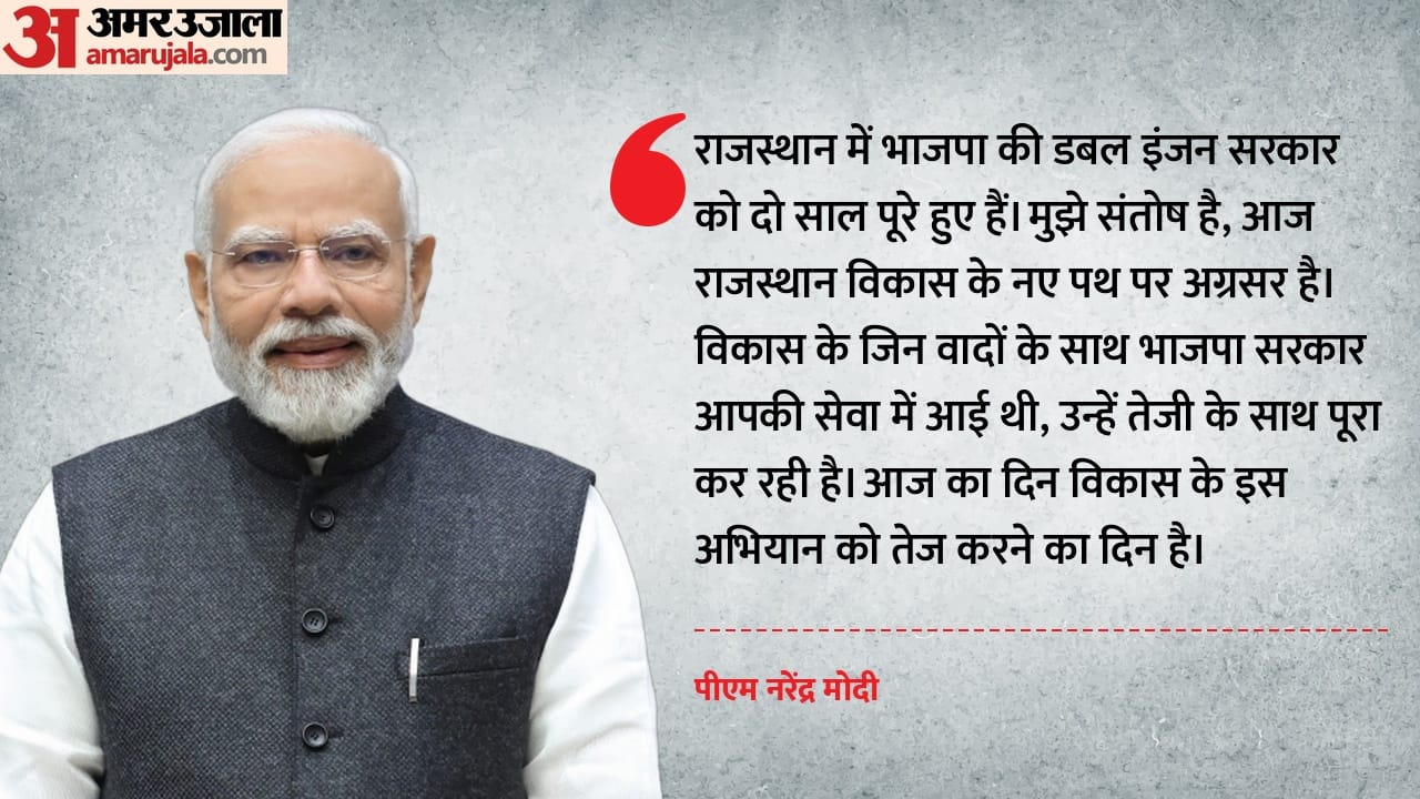 वैक्सीनेशन अभियान की शुरुआत करने के बाद जनसभा को संबोधित करते हुए पीएम मोदी ने भजनलाल सरकार की तारीफ की। उन्होंने कहा कि साथियों कुछ समय पहले ही राजस्थान में भाजपा की डबल इंजन सरकार को दो साल पूरे हुए हैं। मुझे संतोष है, आज राजस्थान विकास के नए पथ पर अग्रसर है। विकास के जिन वादों के साथ भाजपा सरकार आपकी सेवा में आई थी, उन्हें तेजी के साथ पूरा कर रही है। आज का दिन विकास के इस अभियान को तेज करने का दिन है। थोड़ी देर पहले यहां राजस्थान की 17 हजार करोड़ की विकास योजनाओं का शिलान्यास और लोकार्पण हुआ है। ये सारे प्रोजेक्ट राजस्थान की जनता की सुविधा बढ़ाएंगे। युवाओं के लिए रोजगार के अवसर बढ़ाएंगे। दो साल पहले राजस्थान से केवल पेपरलीक की खबरें चमकती रहती थीं। अब राजस्थान में पेपरलीक पर रोक लगी है। दोषियों पर कार्रवाई हो रही है। आज 21 हजार युवाओं को नियुक्ति पत्र सौंपे गए हैं। ये बहुत बड़ा बदलाव आया है।