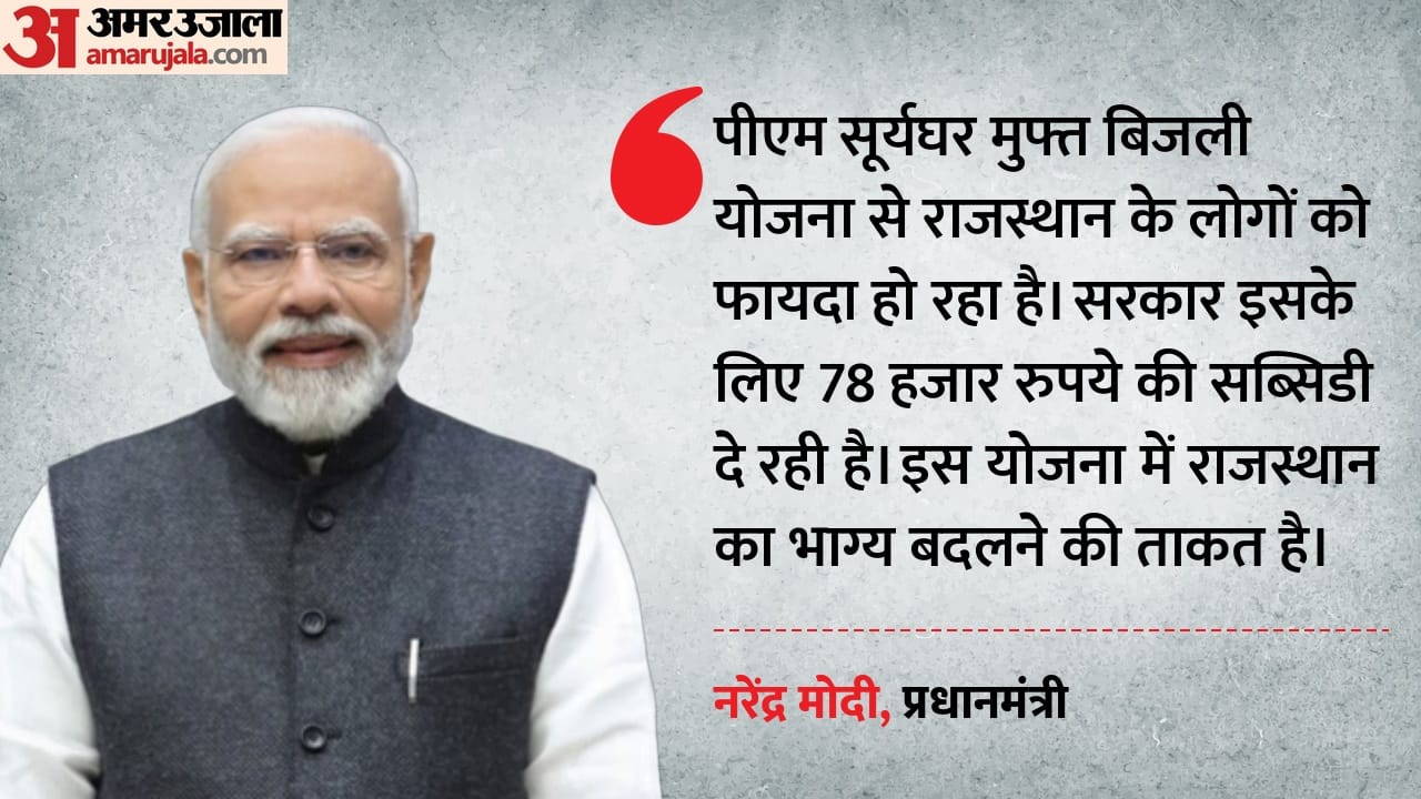 कांग्रेस पर निशाना साधने के बाद प्रधानमंत्री ने लोगों से पीएम सूर्यघर मुफ्त बिजली योजना का जिक्र किया। उन्होंने कहा कि राजस्थान की धूप अब बचत का साधन बन रही है। पीएम सूर्यघर मुफ्त बिजली योजना से राजस्थान के लोगों को फायदा हो रहा है। इस योजना में राजस्थान का भाग्य बदलने की ताकत है। योजना के तहत अपने घर के लिए बिजली बनाई भी जा सकती है और बची हुई बिजली ग्रिड में डालकर बेची भी जा सकती है। सरकार इसके लिए 78 हजार रुपये की सब्सिडी दे रही है। विकसित राजस्थान से विकसित भारत के मंत्र काम किया जा रहा है।