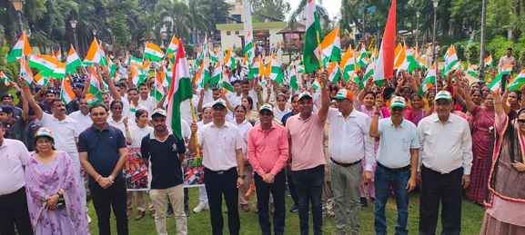 स्वतंत्रता दिवस से पहले डूंगरपुर जिला बुधवार को देशभक्ति के रंगों में सराबोर हो गया। हर घर तिरंगा अभियान के तहत जिला मुख्यालय से लेकर गांव-गांव तक तिरंगा यात्राएं और रैलियां निकाली गईं। इन आयोजनों ने पूरे जिले में आजादी के अमर रंग बिखेर दिए। जिला मुख्यालय डूंगरपुर में जिला कलेक्टर अंकित कुमार सिंह ने लक्ष्मण ग्राउंड से तिरंगा यात्रा को हरी झंडी दिखाकर रवाना किया। यात्रा में नौजवान, महिलाएं, अधिकारी-कर्मचारी, स्काउट-गाइड, पुलिस, आंगनवाड़ी कार्यकर्ता और स्वयं सहायता समूह की महिलाएं बड़ी संख्या में शामिल हुईं। यात्रा लक्ष्मण ग्राउंड से शुरू होकर तहसील चौराहा, पुराना बस स्टैंड, शास्त्री कॉलोनी, महाविद्यालय, डाइट भवन, बस स्टैंड चौराहा होते हुए शहीद पार्क पहुंची।