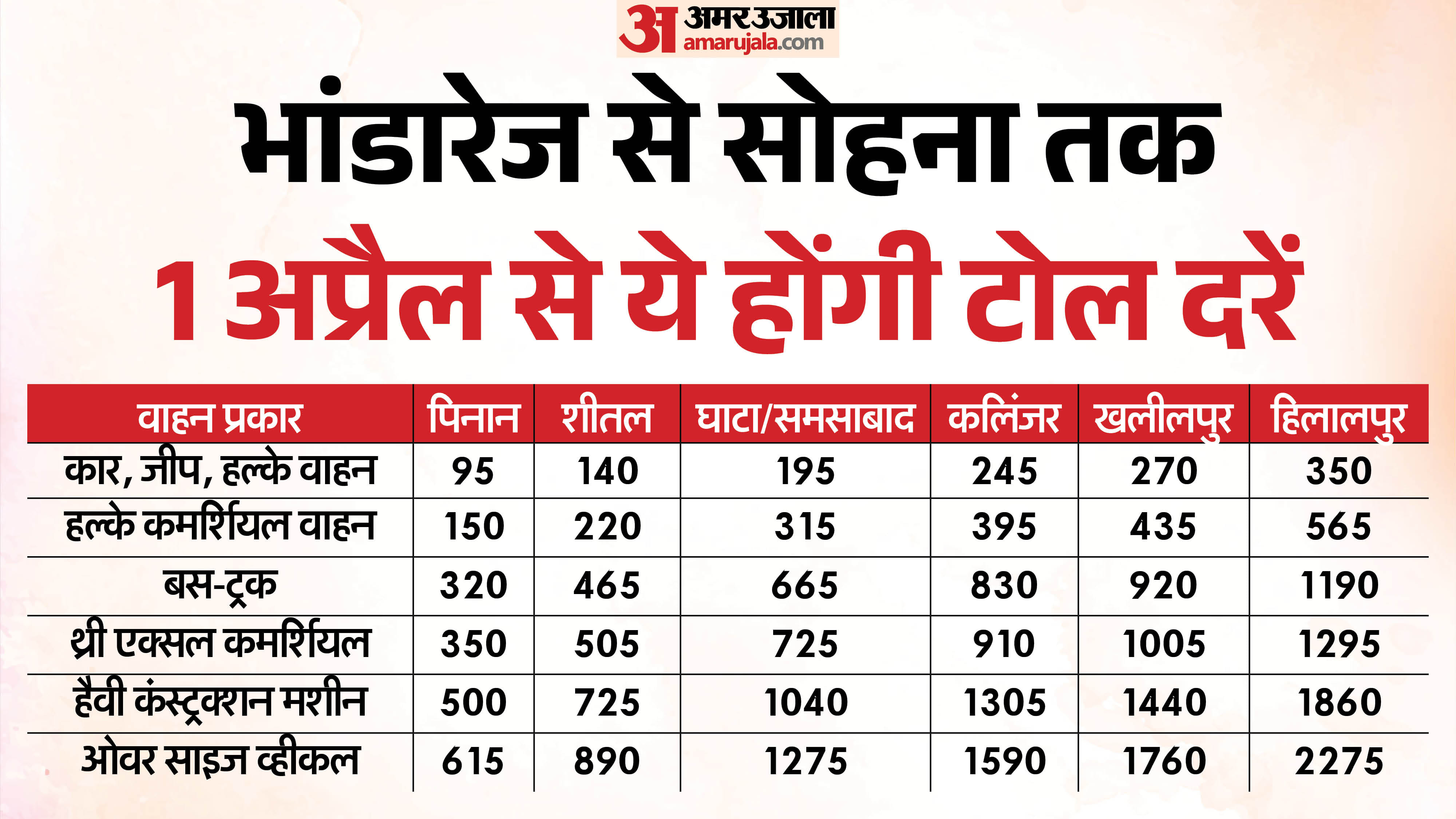 किस रूट पर कितना बढ़ा टोल