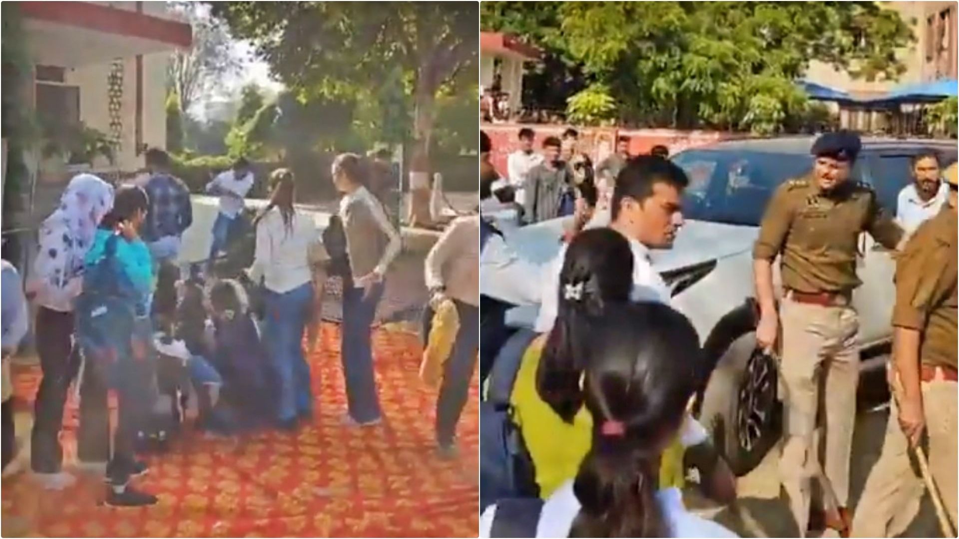 पुलिस ने कार्रवाई करते हुए छात्र नेता शुभम रेवाड़ सहित आठ छात्रों को हिरासत में लिया। जैसे ही पुलिस वाहन उन्हें लेकर रवाना हुआ, वहीं मौजूद कुछ छात्राओं ने विरोध जताते हुए वाहन के आगे के हिस्से पर चढ़कर उसे रोकने का प्रयास किया। छात्राएं पुलिस और प्रशासन के खिलाफ नारेबाजी करती रहीं। काफी प्रयासों के बाद पुलिस उन्हें नीचे उतार सकी और वाहन आगे बढ़ पाया।