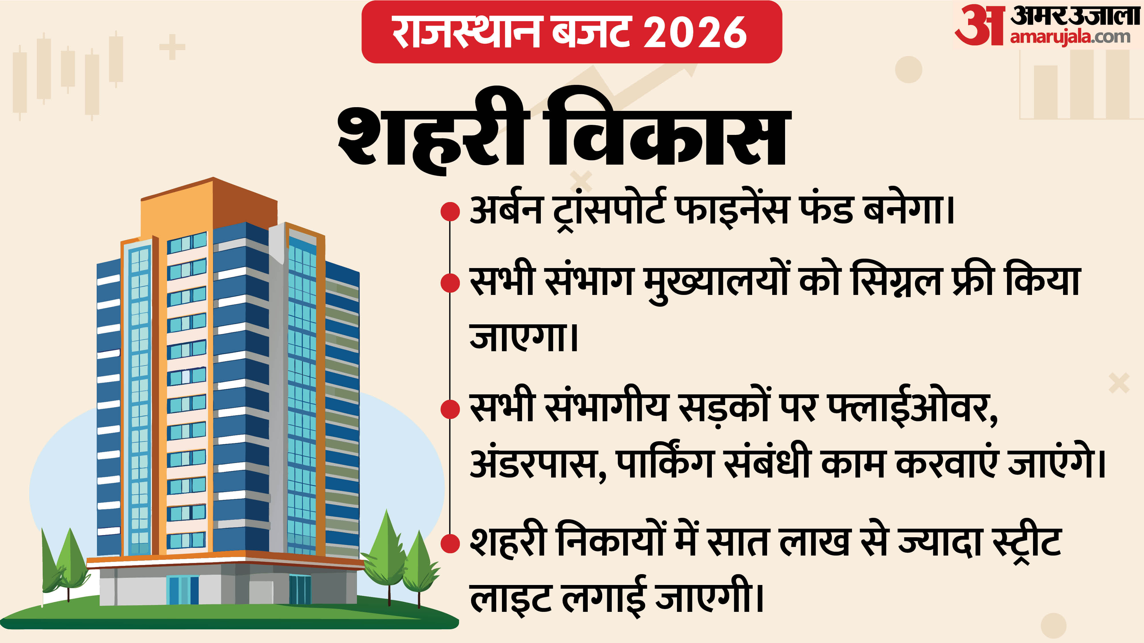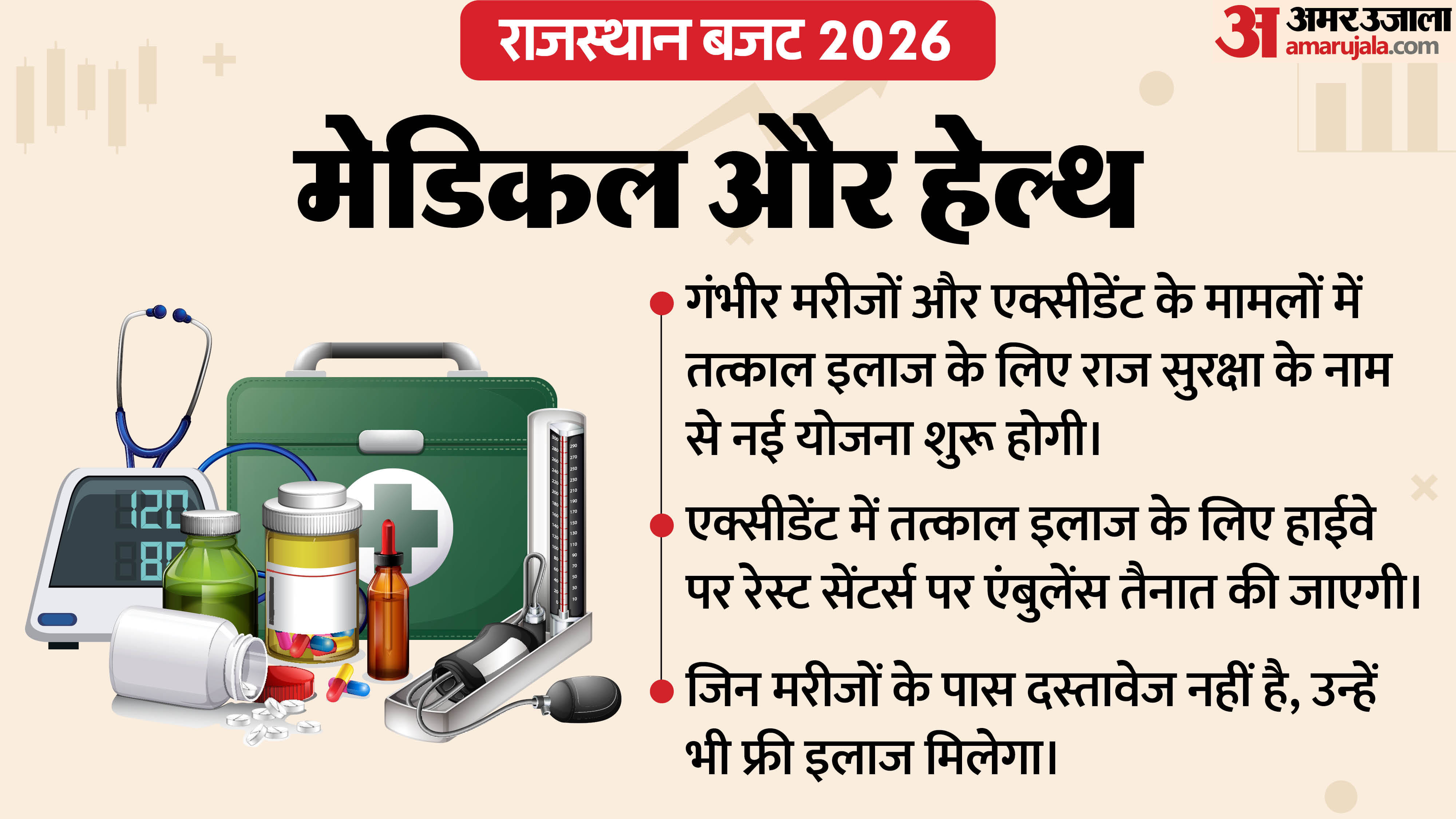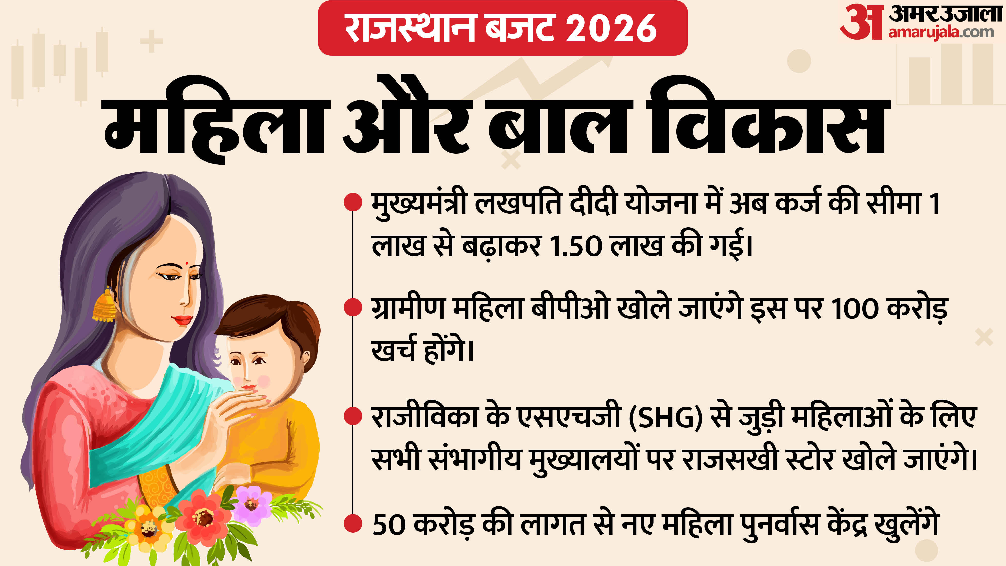 राजस्थान बजट में इस बार सरकार ने महिला सशक्तिकरण, स्वास्थ्य सेवाओं, स्कूली शिक्षा, उद्योग और शहरी विकास पर बड़ा फोकस रखा है। मुख्यमंत्री लखपति दीदी योजना में कर्ज सीमा बढ़ाने से लेकर महिला स्वयं सहायता समूहों को एक करोड़ तक ऋण, गंभीर मरीजों के लिए ‘राज सुरक्षा’ योजना, मेधावी छात्रों को लैपटॉप ई-वाउचर और इंडस्ट्रियल पार्क की स्थापना जैसी कई अहम घोषणाएं की गई हैं। शहरों को सिग्नल फ्री बनाने और लाखों स्ट्रीट लाइट लगाने की भी तैयारी है। आखिर किस सेक्टर को क्या मिला और आमजन पर इसका क्या असर होगा, इसे ग्राफिक के जरिए आसान भाषा में समझें।