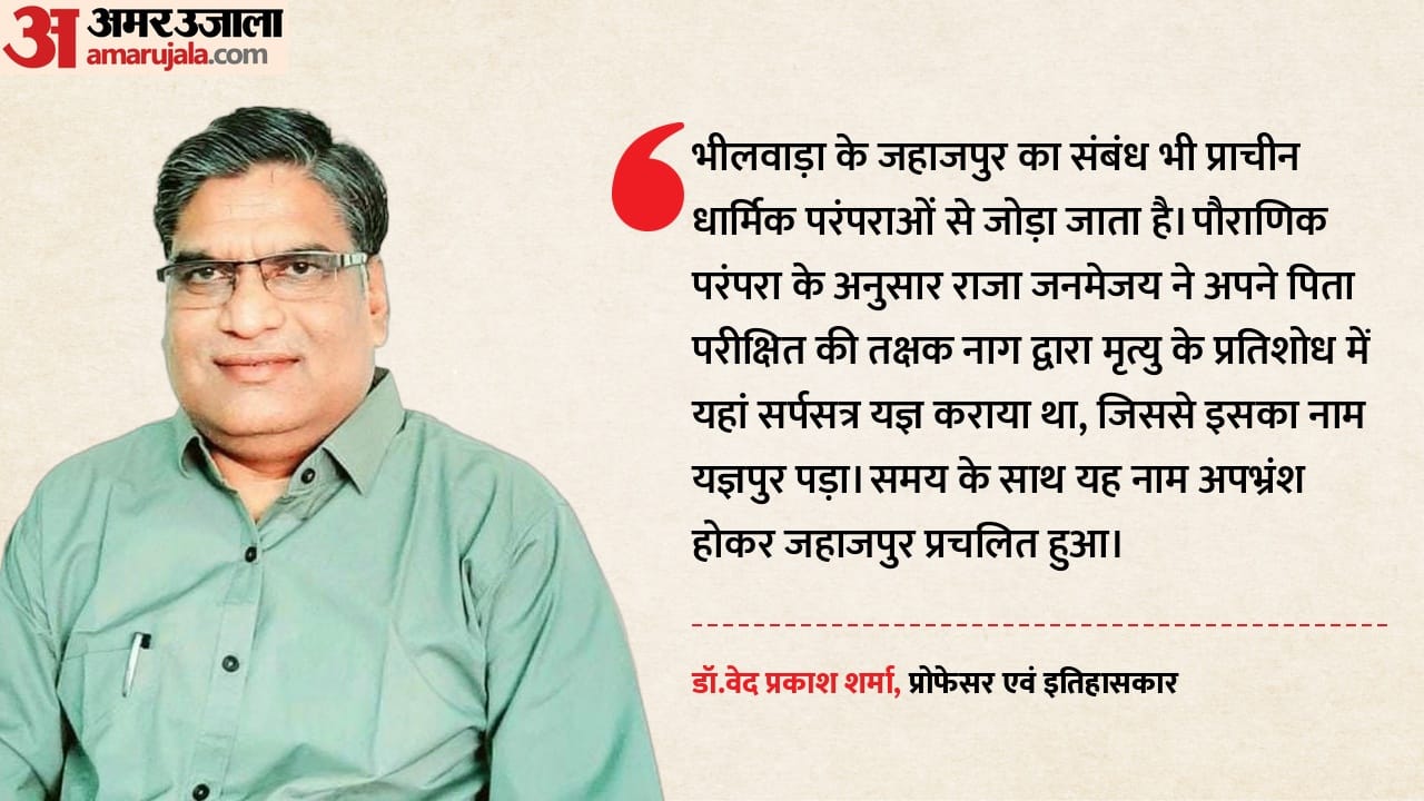 भीलवाड़ा जिले में स्थित जहाजपुर का संबंध भी प्राचीन धार्मिक परंपराओं से जोड़ा जाता है। इतिहासकारों के अनुसार इसका प्राचीन नाम यज्ञपुर या यज्ञपुरी माना जाता है। पौराणिक परंपरा के अनुसार राजा जनमेजय ने अपने पिता परीक्षित की तक्षक नाग द्वारा मृत्यु के प्रतिशोध में यहां सर्पसत्र यज्ञ कराया था, जिससे इसका नाम यज्ञपुर पड़ा। समय के साथ यह नाम अपभ्रंश होकर जहाजपुर प्रचलित हुआ।