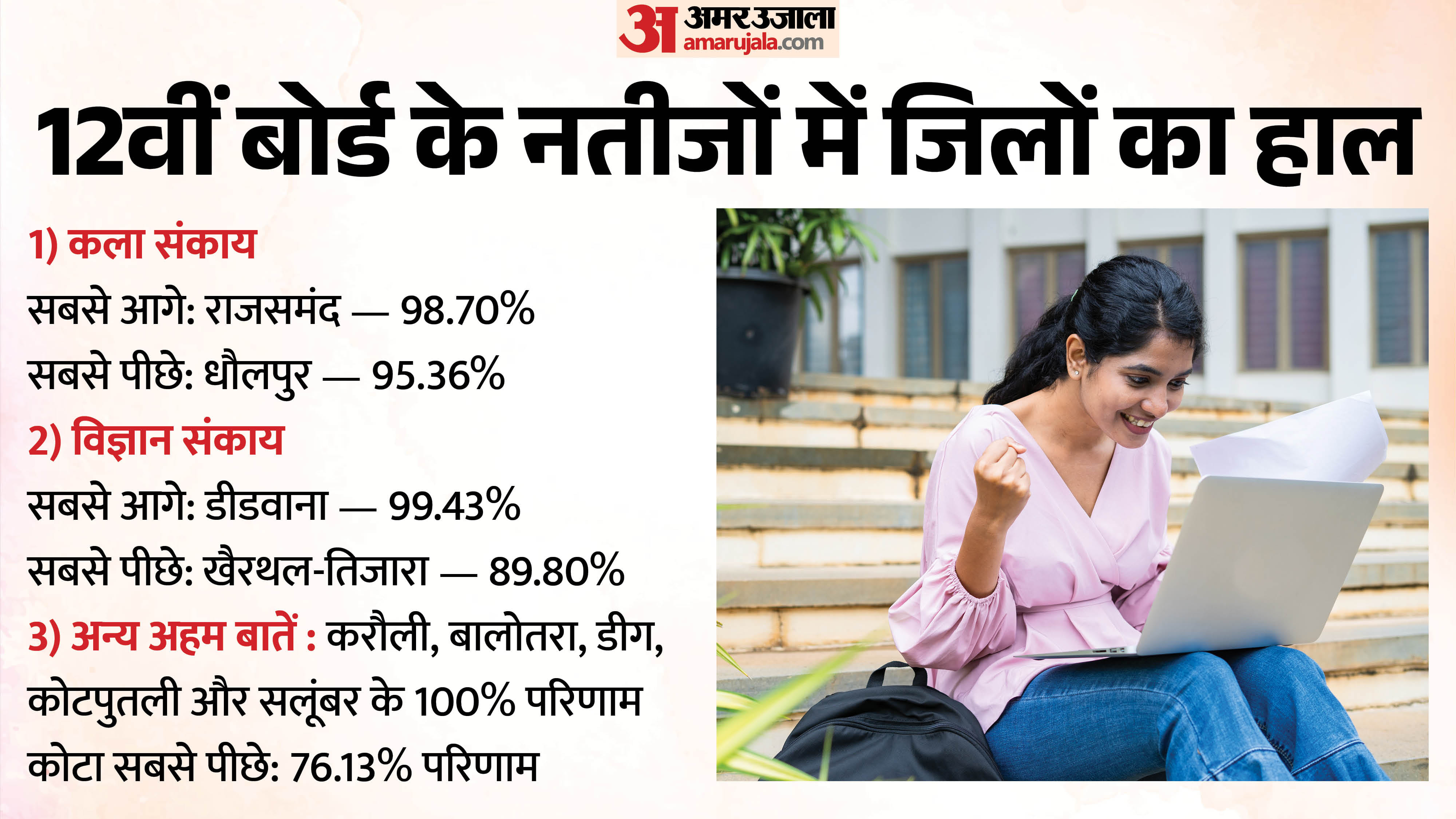 राजस्थान माध्यमिक शिक्षा बोर्ड की 12वीं कक्षा के नतीजे इस बार काफी उत्साहजनक रहे। तीनों संकायों में जिलों के बीच जबरदस्त होड़ देखी गई और नवगठित जिले शानदार प्रदर्शन करते हुए टॉप-10 में शामिल हुए।