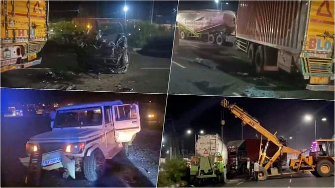 भीषण हादसे में चार की मौत: उदयपुर-अहमदाबाद हाईवे पर भिड़े पांच वाहन, सड़क पर बिखरे पड़े थे मांस के लोथड़े
