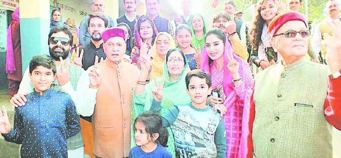 धूमल ने परिवार के साथ किया मतदान, बोले-जीत का नया इतिहास बनाएगी भाजपा
