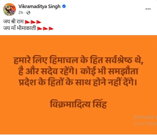 नीरज भारती ने विक्रमादित्य सिंह के समर्थन में डाली पोस्ट