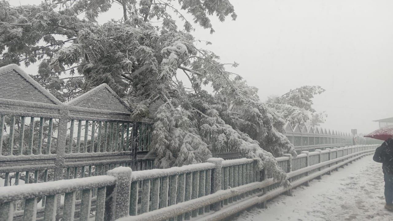 #WATCH शिमला(हिमाचल प्रदेश): ताज़ा हिमपात से पर्यटकों में खुशी की लहर है। पूरा शहर बर्फ की चादर से ढक गया है। pic.twitter.com/KeYJ50a8w2
